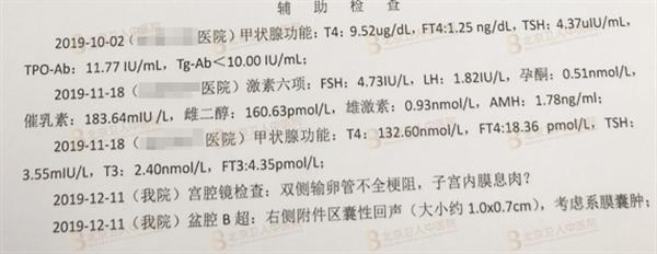 2019年8月到當地醫院監測卵泡一個周期,未見優質卵泡,未予治療。2019年10月2日就診北京另一醫院,被診斷為甲狀腺功能減退,給予口服優甲樂治療,監測排卵,促排卵一個周期,可見優質卵泡排出,再次試孕,還是沒有懷上。