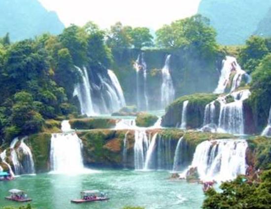 德天瀑布位于廣西壯族自治區(qū)崇左市大新縣碩龍鎮(zhèn)德天村,中國與越南邊境處的歸春河上游,瀑布?xì)鈩?shì)磅礴、蔚為壯觀,與緊鄰的越南板約瀑布(“B?n Gi?c & ??c Thiên”)相連,是亞洲第一、世界第四大跨國瀑布,年均水流量約為貴州黃果樹瀑布的三倍,為中國國家AAAAA級(jí)旅游景區(qū)。還是《酒是故鄉(xiāng)醇》和《花千骨》的外景拍攝地,神奇而美妙。