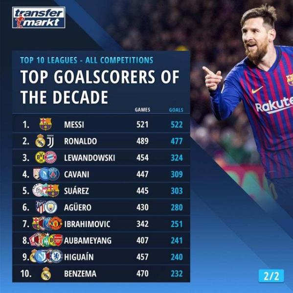 北京時間2020年1月1日,權威網站德轉貼出一項數據,梅西再創歷史:他在過去10年里一共為巴薩和阿根廷國家隊登場521次,共轟進522球,場均超過了1球,兩項數據都是第1。C羅,萊萬多夫斯基分別排第2和第3!1987年出..
