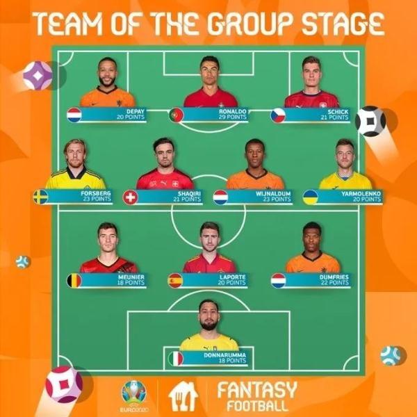 北京時間2021年6月25日凌晨,歐足聯官方評選了2021歐洲杯小組賽最佳11人陣容。葡萄牙巨星C羅獲最高分,光榮入選,而荷蘭國家隊則成為最大贏家,共有3名荷蘭國腳入選歐洲杯小組賽的最佳陣容。歐洲杯小組賽具體入選..