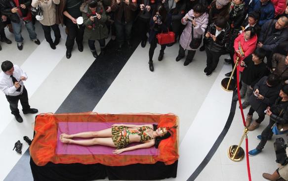 東莞一商場現美女“人體盛宴”。