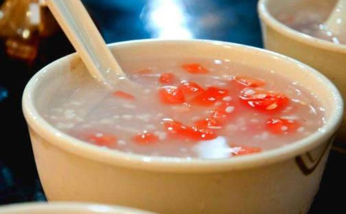 3、全套醪糟:做法是把醪糟放在沸水中燒開,打入雞蛋花,并撒入葡萄干、桃仁、花生、果干、白糖等,最后加入燒開的牛奶。