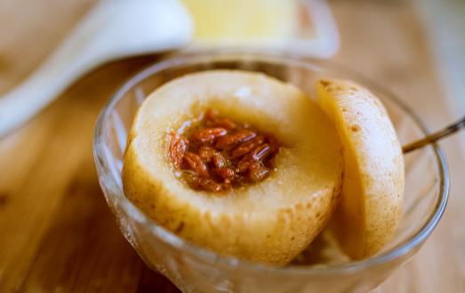 梨能潤肺止咳,但梨屬寒性,天冷時(shí)吃生梨會(huì)更感體寒。但如果將梨煮一下,情況就完全不同了。煮熟的梨去除了寒性,梨皮會(huì)變得略苦,去燥潤肺的功效完全被釋放出來。梨籽中的木質(zhì)素本來屬于不可溶纖維,但在加熱后會(huì)在腸道中被溶解,將有害的膽固醇揪出體外。“冰糖雪梨”則是雪梨煮食最常見的一種方式。其做法簡(jiǎn)單,將雪梨去核切塊,與適量的涼開水和冰糖一起,慢火煮半個(gè)小時(shí)就好了。梨能潤肺生津、清熱化痰。冬天吃冰糖雪梨來滋陰潤肺是最好不過的。有慢性氣管炎、慢性咽炎的患者也可以適當(dāng)吃一些冰糖雪梨來做食療。